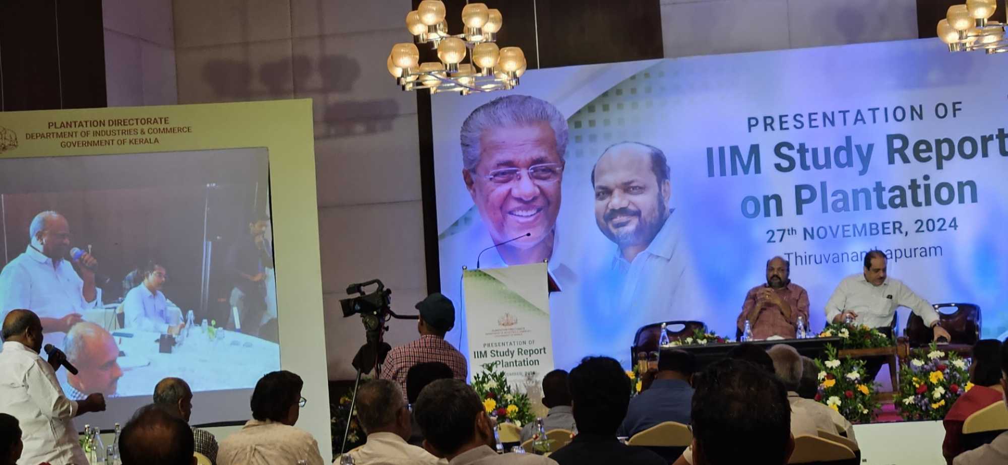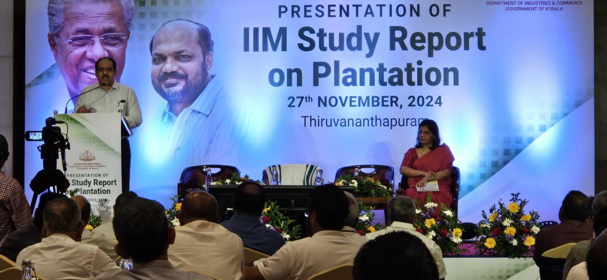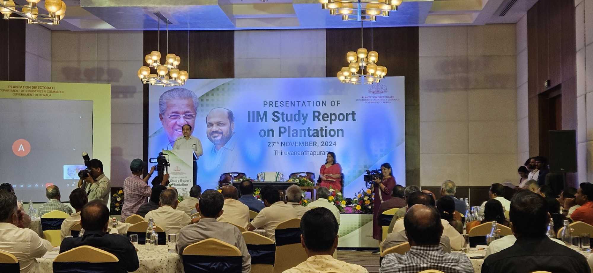 The Plantation Directorate organized a meeting to present the IIM study report to stakeholders in the plantation sector. The event, held on November 27, 2024, was convened by the Industries Minister, Shri P. Rajeeve, who emphasized the government's commitment to revitalizing the plantation industry. The Principal Secretary of Industries, Shri. APM Mohammed Hanish IAS, and representatives from IIM Kozhikode presented key insights from the report, highlighting challenges such as fluctuating commodity prices, labor shortages, and the impacts of climate change, while proposing actionable solutions.