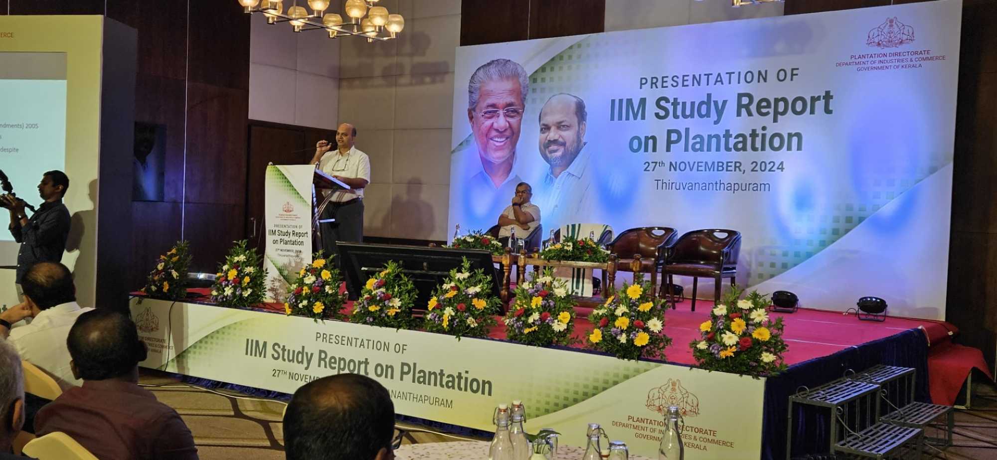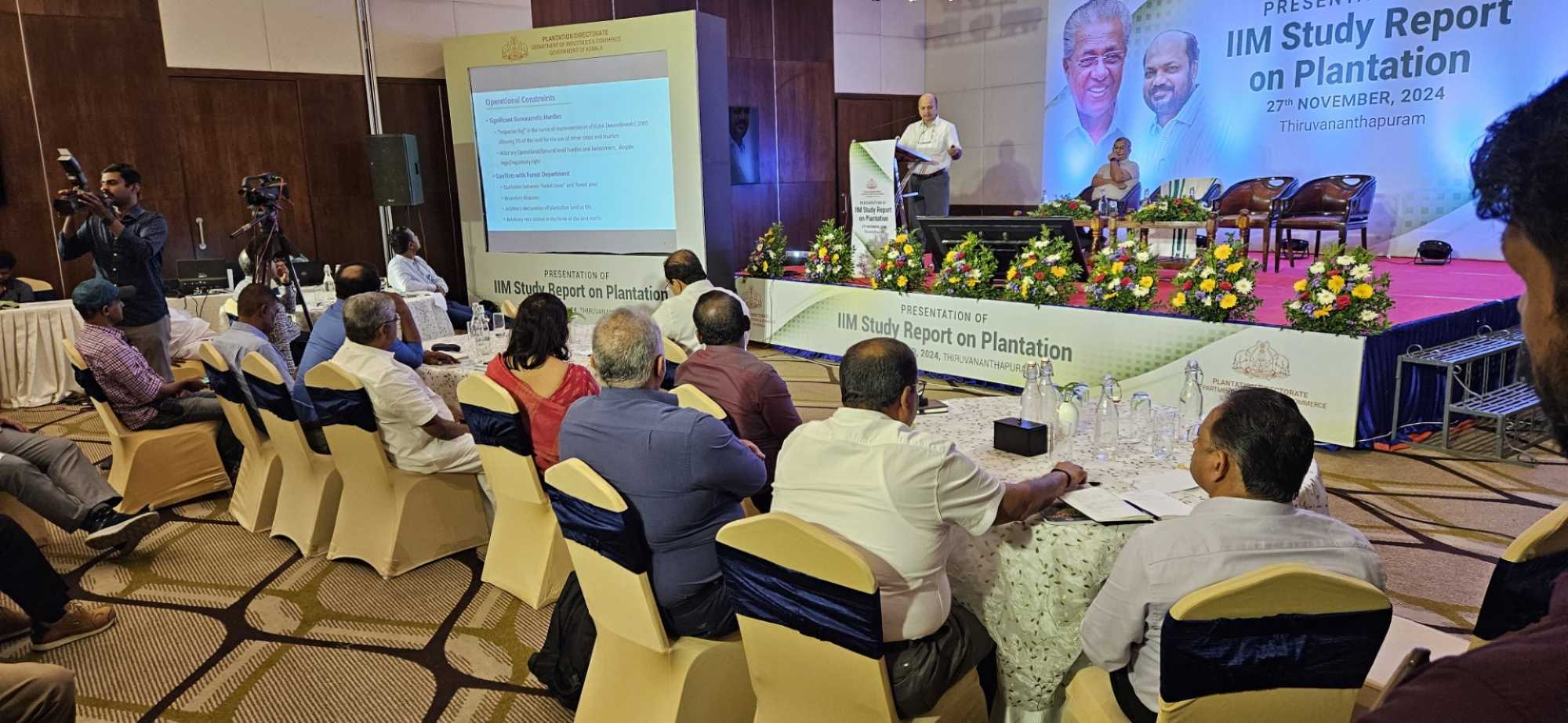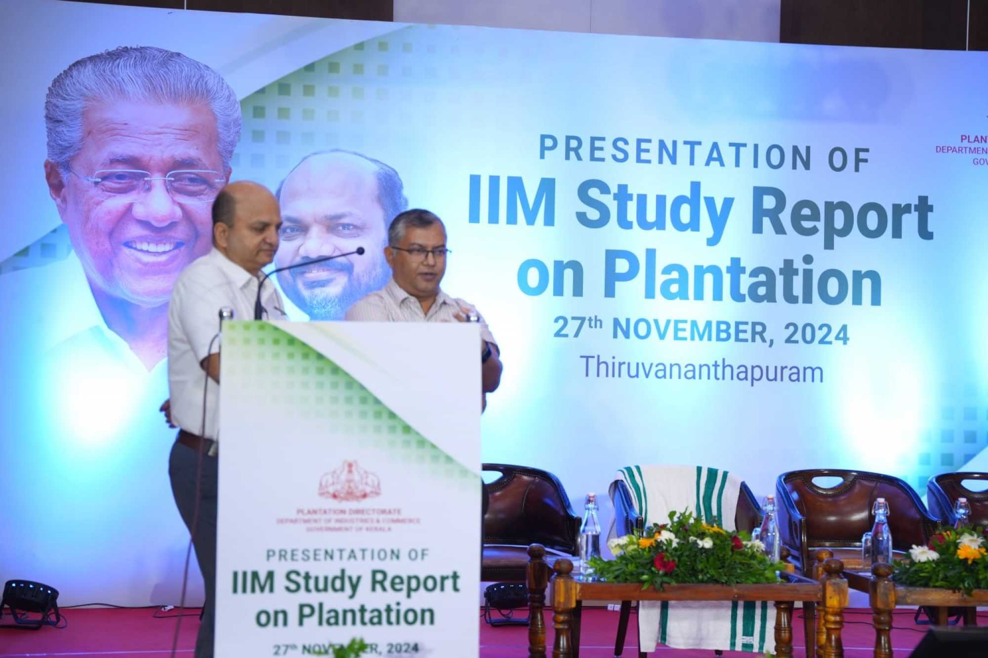 The Plantation Directorate organized a meeting to present the IIM study report to stakeholders in the plantation sector. The event, held on November 27, 2024, was convened by the Industries Minister, Shri P. Rajeeve, who emphasized the government's commitment to revitalizing the plantation industry. The Principal Secretary of Industries, Shri. APM Mohammed Hanish IAS, and representatives from IIM Kozhikode presented key insights from the report, highlighting challenges such as fluctuating commodity prices, labor shortages, and the impacts of climate change, while proposing actionable solutions.